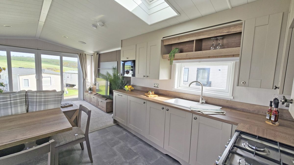 Discover the Morlaix, boasting a charming farmhouse interior and a cosy ambiance throughout. With neutral tones accented by Truffle Brown woodgrain features, this stylish holiday home is right on trend, providing the perfect retreat for the whole family.